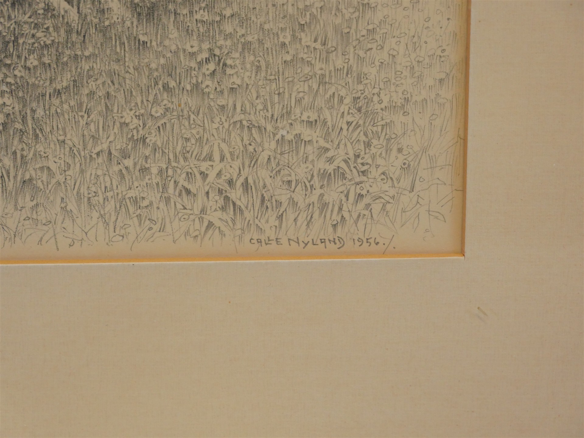 215. CALLE NYLAND. Blyertsteckning, sign Calle Nyland 1956. Tavlans mått 45 x 58 cm.