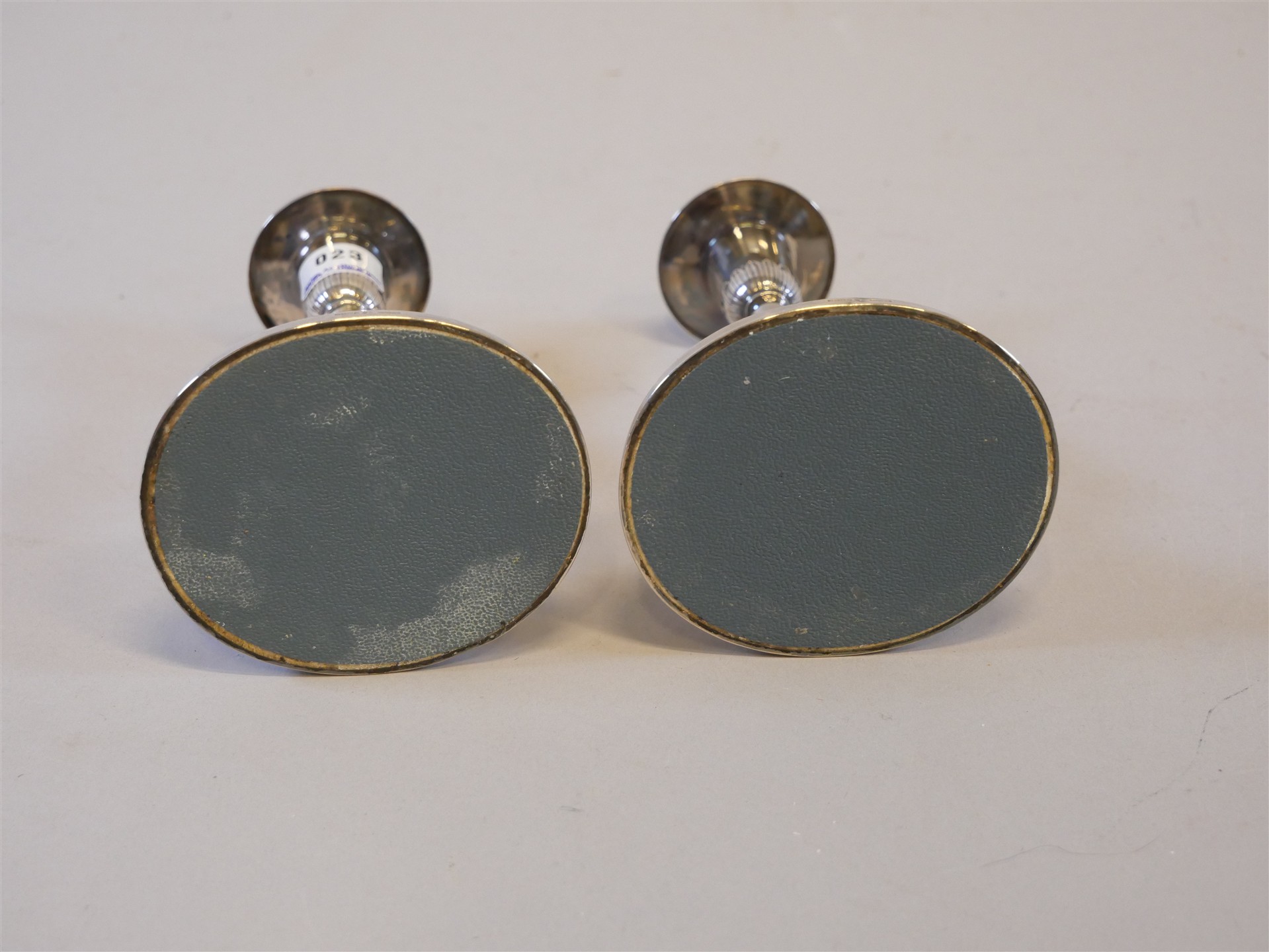023. LJUSSTAKAR 1 par med gravyr. Kontr. silver. H 14,5 cm. Bruttovikt 370 gram.