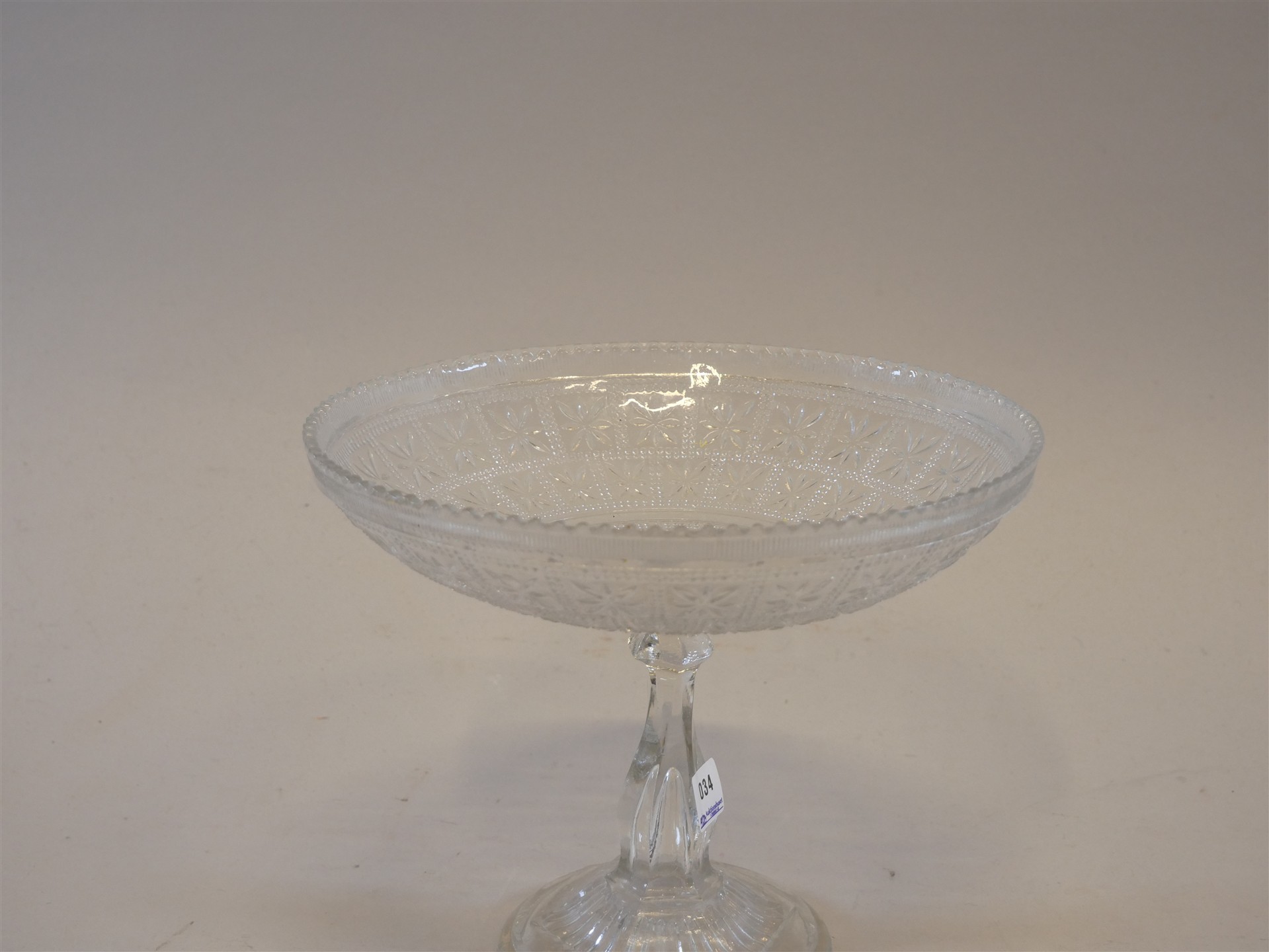 034. FRUKTSKÅL på fot, pressglas. H. 20 cm. Diam. 24,5 cm.