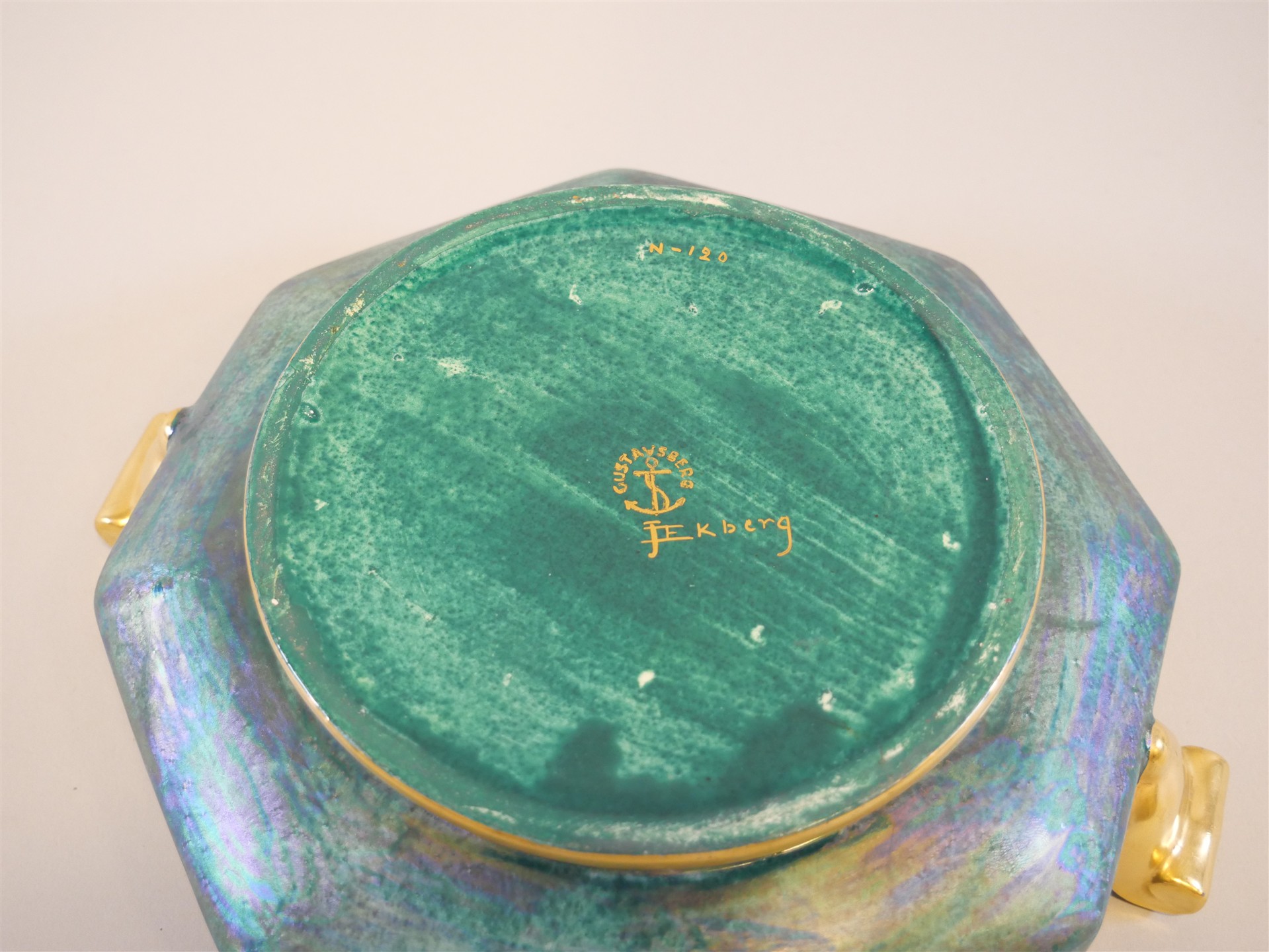 183. JOSEF EKBERG. Skål m hänklar. Signerad: Gustavsberg, J. Ekberg. H. 7,5 cm. L. 24 cm.