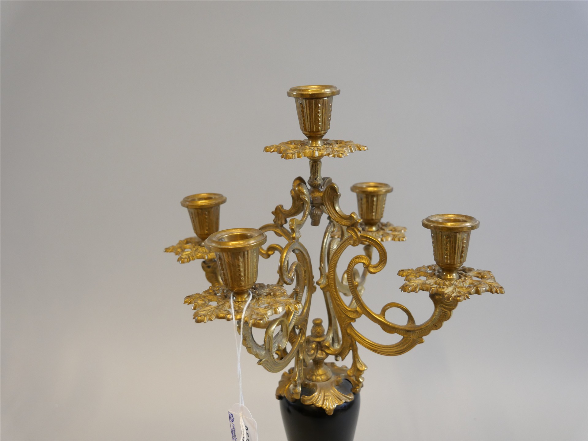 253. KANDELABRAR, 1 par. Förgylld zink o sten. H. 46,5 cm.