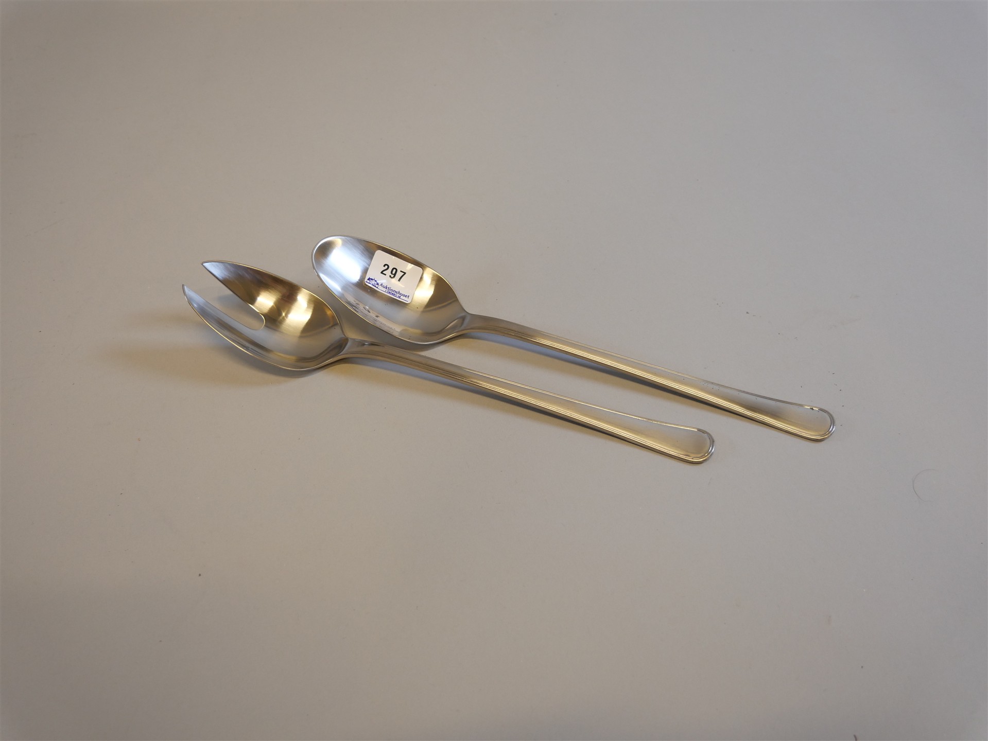 297. GEORG JENSEN, Denmark. Salladsbestick, 2 st, rostfria. L. 25 cm.
