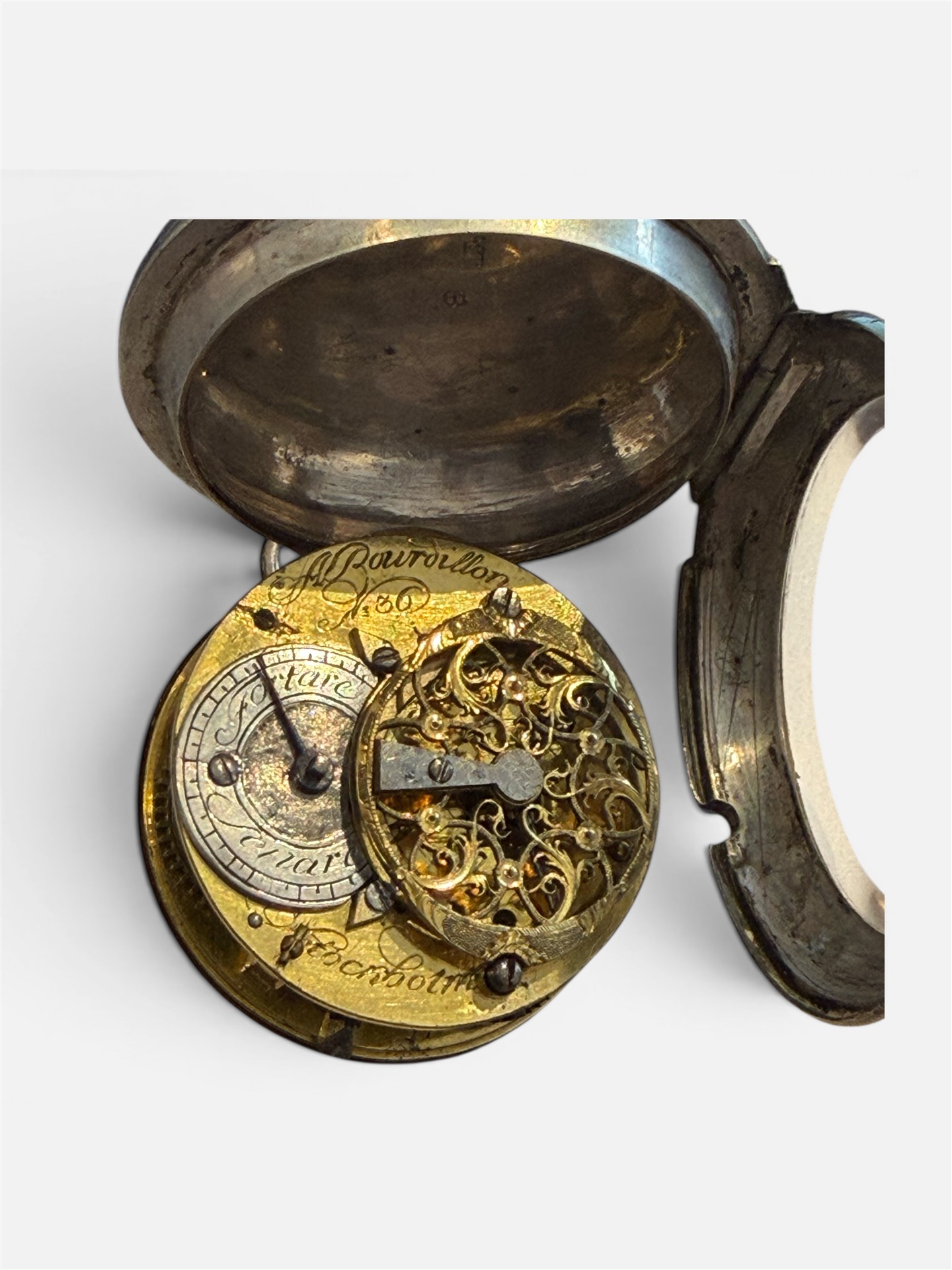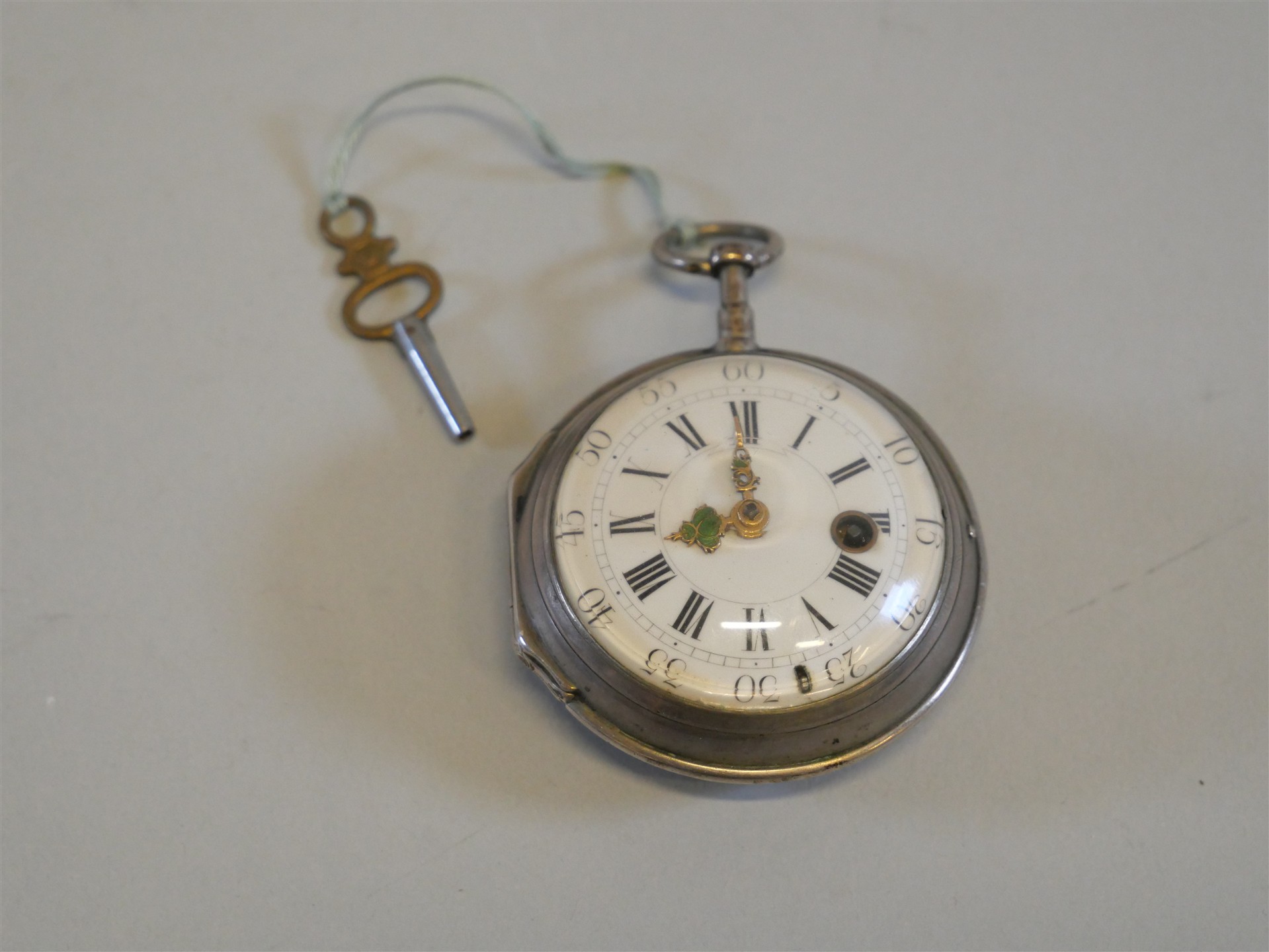 321. SPINDELUR 1700-tal, silver. Viss del av emaljen borta på en visare.