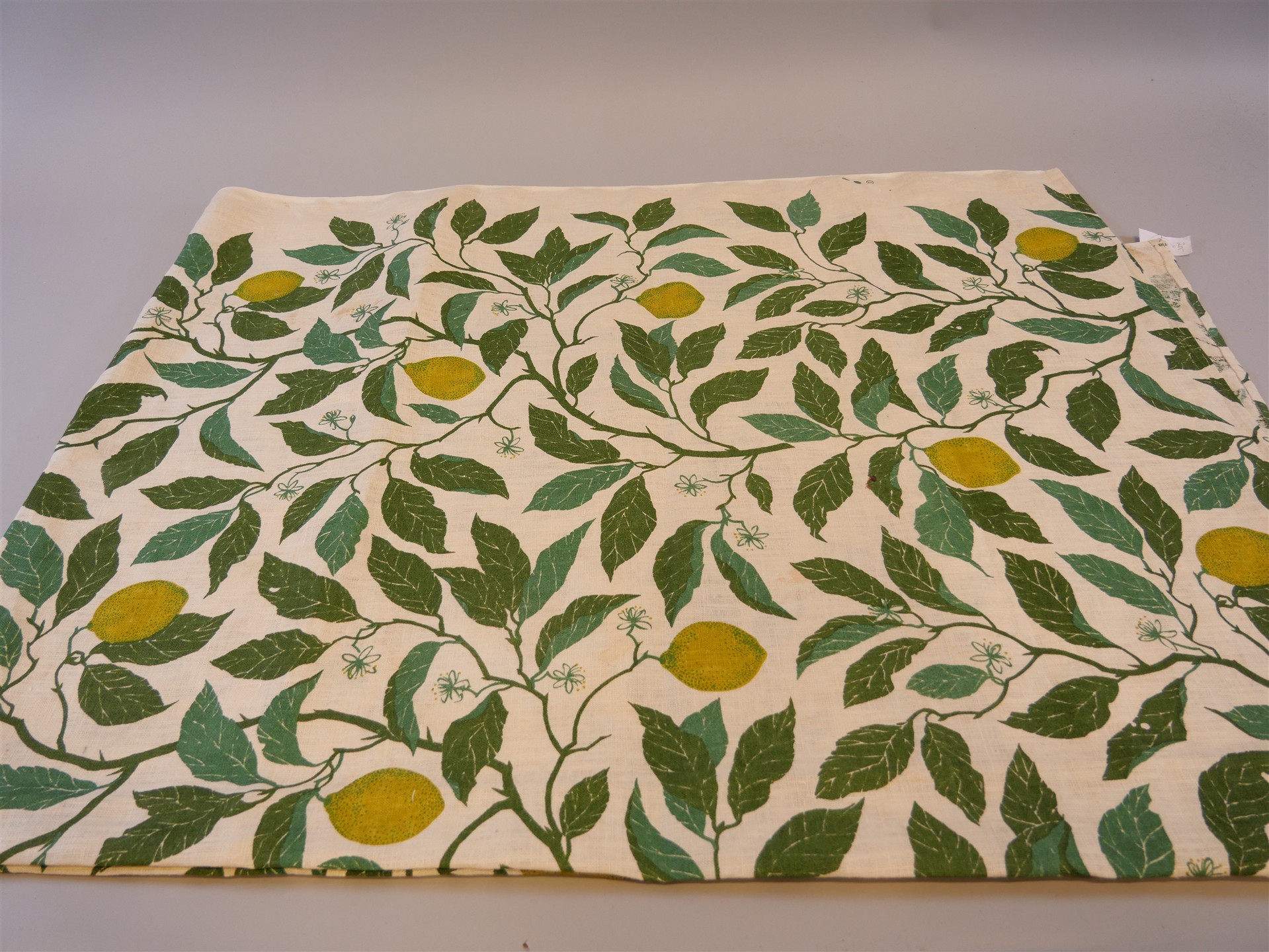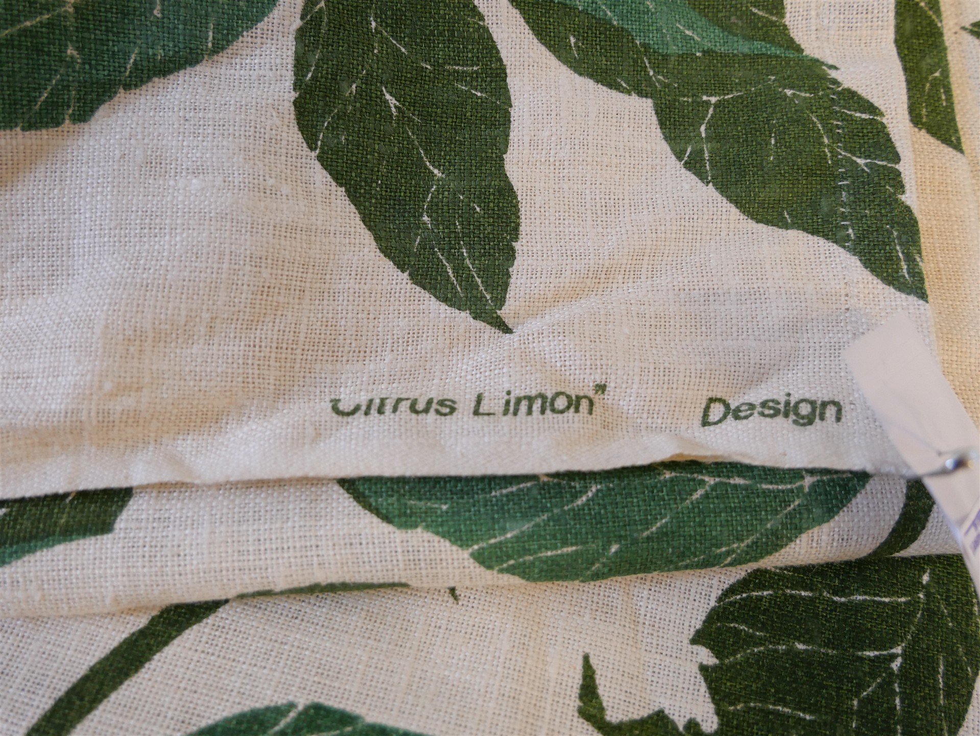 375. LINNEDUK. Ljungbergs Textiltryck Floda "Citrus Limon" Design Maria Åström. FLäck förekommer. 205 x 150 cm.