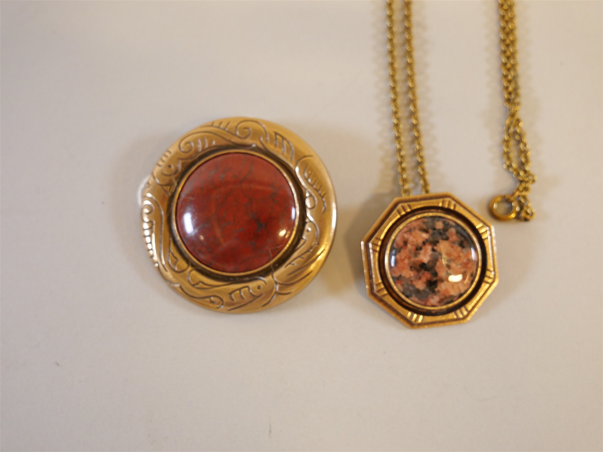 491. BROSCH Kalevala Koru, L 4,7 cm & HALSBAND med hänge/brosch Kalevala Viapori 250. L 58 cm. Finland, brons.