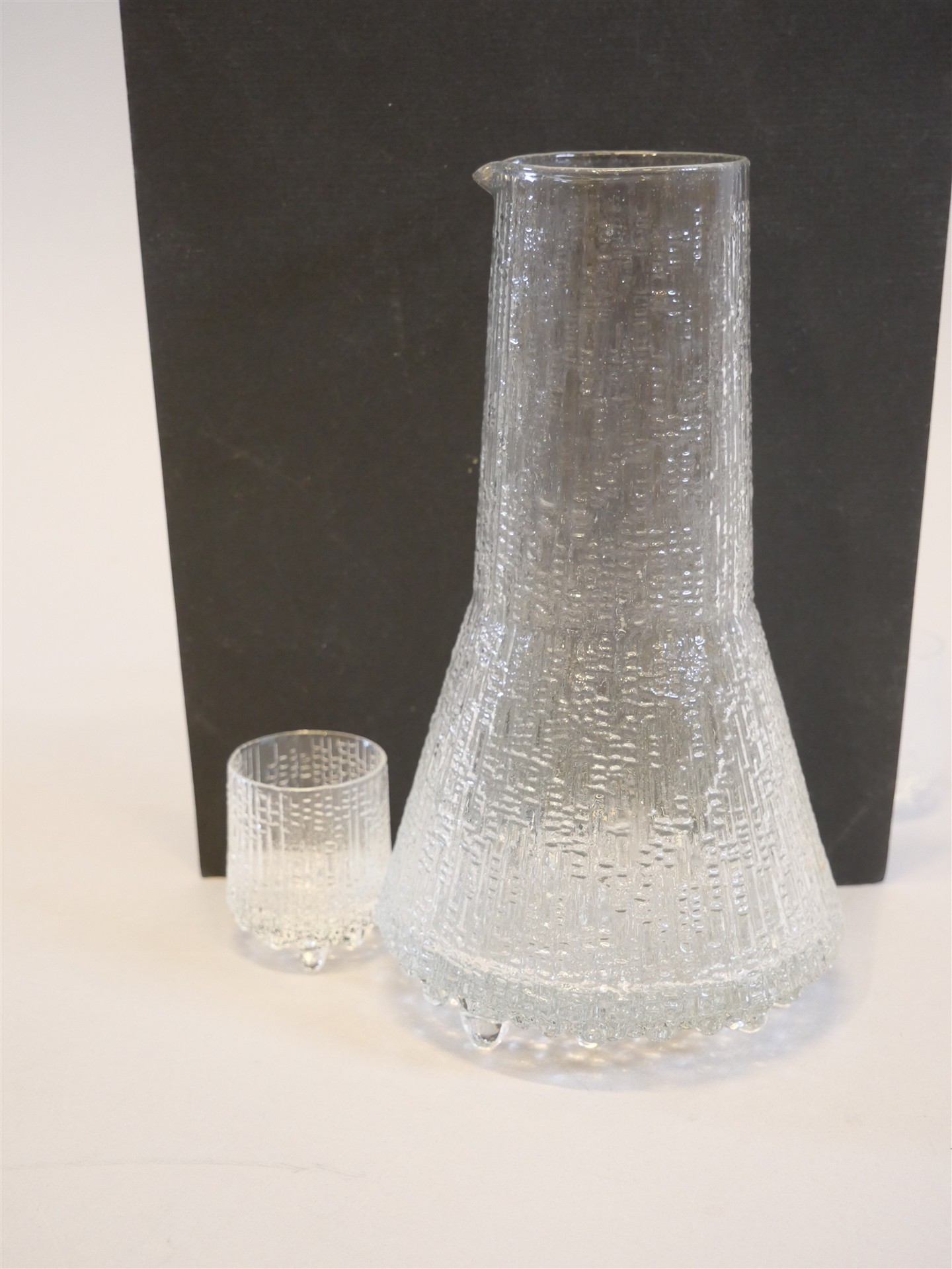 056. ULTIMA THULE, Iittala. Snapsglas 12 st H 6 cm. Karaff 22 cm.