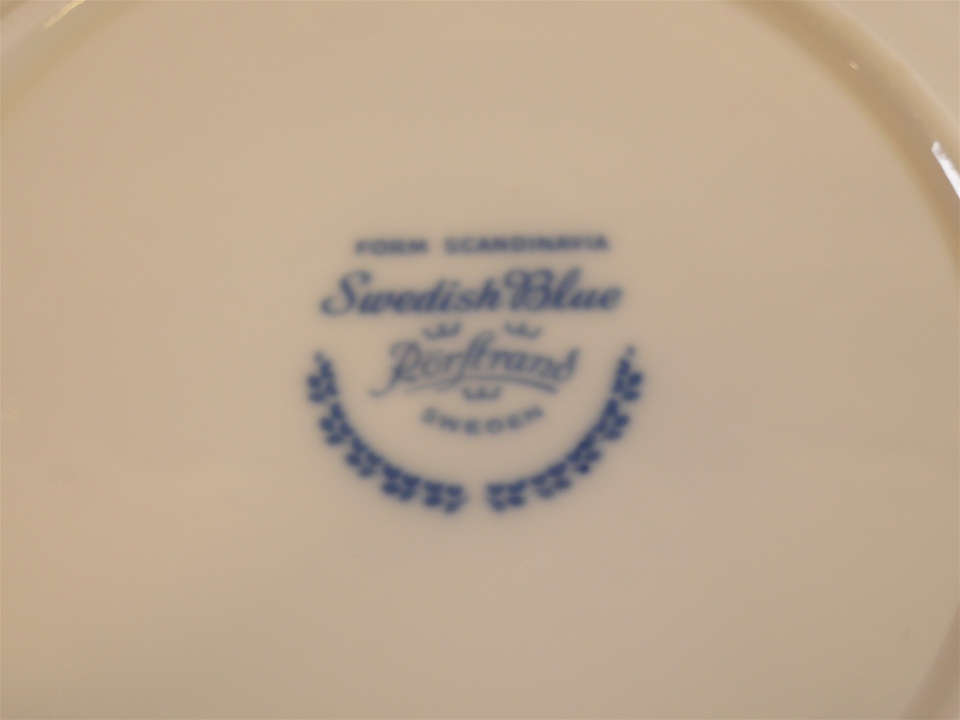 083. "SWEDISH BLUE" Rörstrand. MATSERVIS, 56 delar. Bestående av mattallrikar 13 st, djupa tallrikar 12 st, förrättstallrikar 12 st, assietter 14 st, tillbringare, såsskål, karotter 2 st, uppläggningsfat 5 st. "Swedish Blue", Carl Harry Stålhane, Rörstrand.