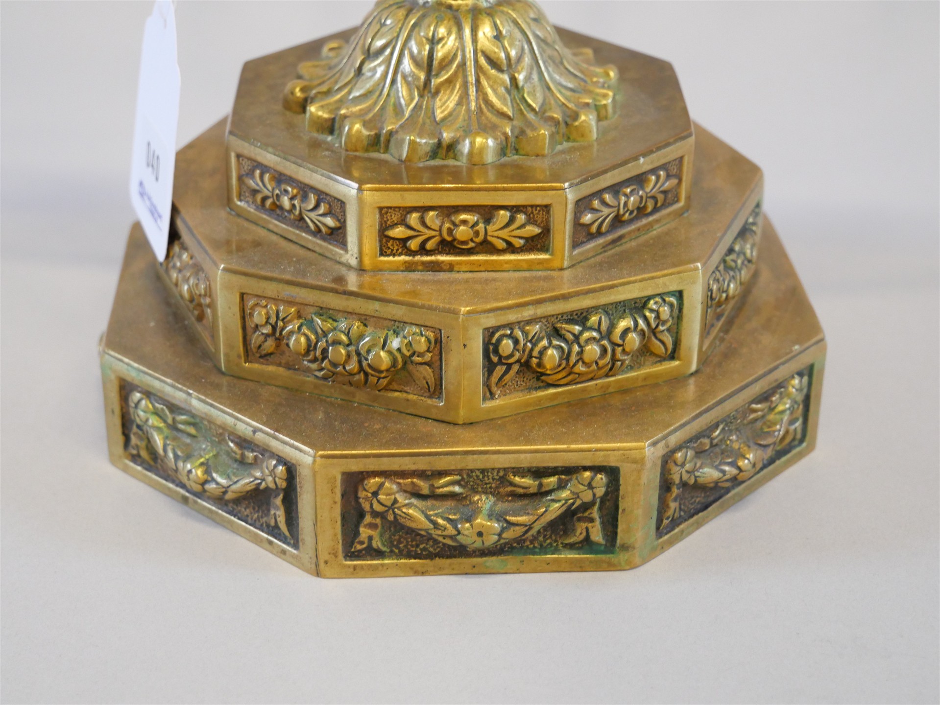 040. LJUSSTAKE, 7-armad, mässing. H. 29 cm.