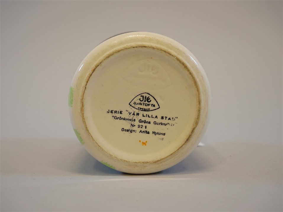 235. ANITA NYLUND. Burk "Grönkvists" Gröna Gurkor, ur serien Vår lilla stad. Nr 22. Totalhöjd 14 cm.
