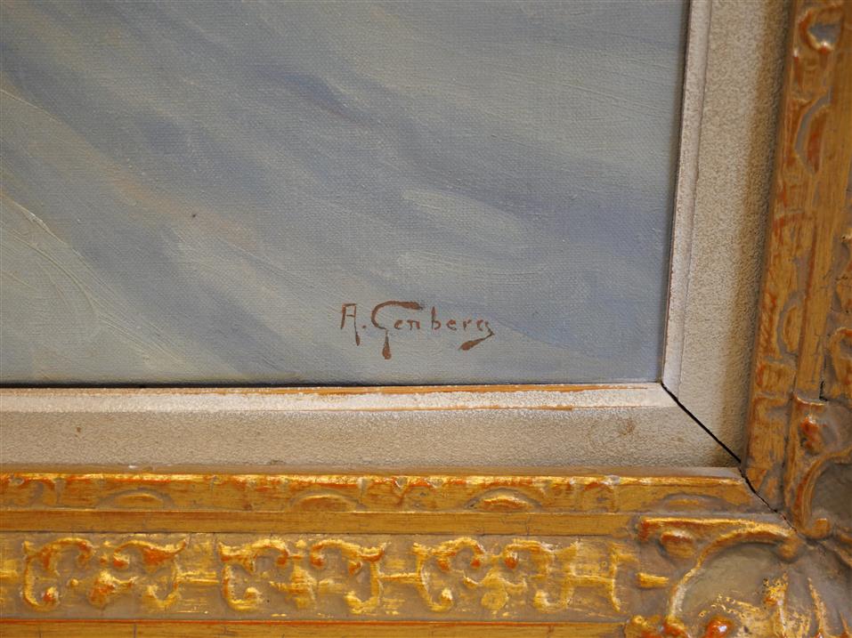 634. ANTON GENBERG. Oljemålning, vinterlandskap, sign A Genberg. Duk 44 x 61 cm.