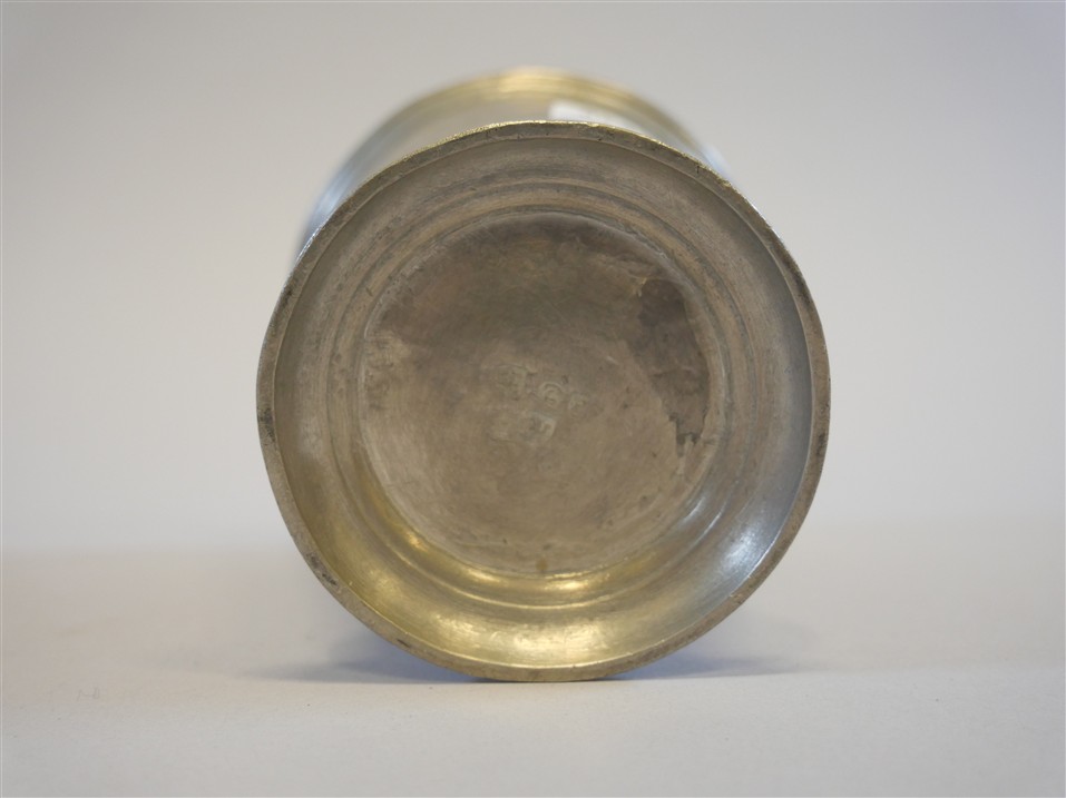059. BÄGARE, tenn. Lars Lundwall 1761-1780/82. Dekor av bladverk. H 14 cm.