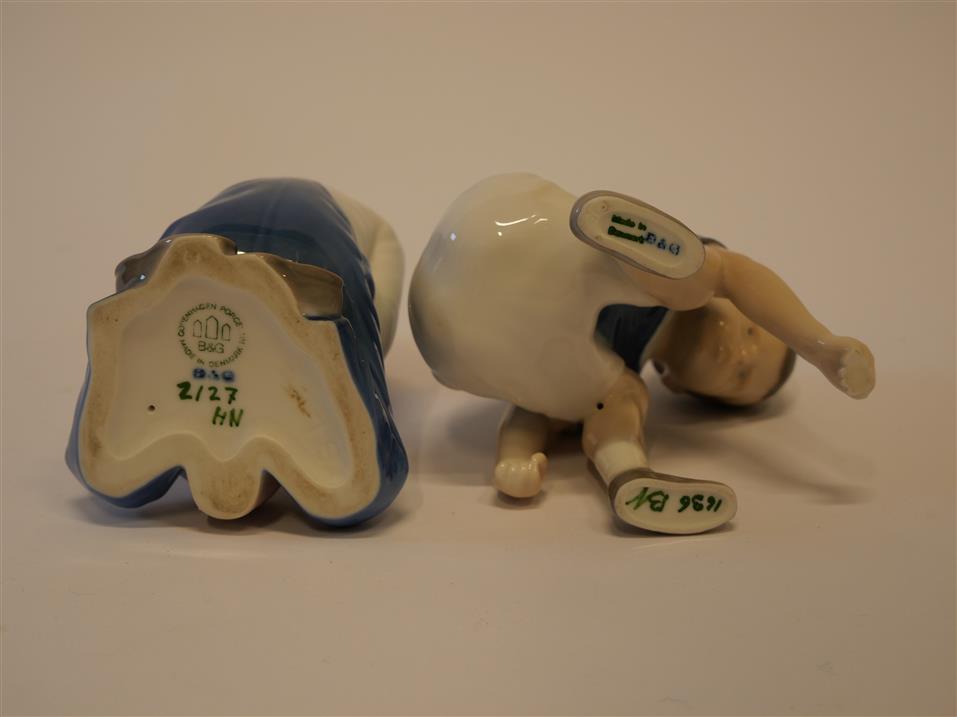 097. BING & GRÖNDAHL. Figuriner 2 st. H. 9 och 13 cm