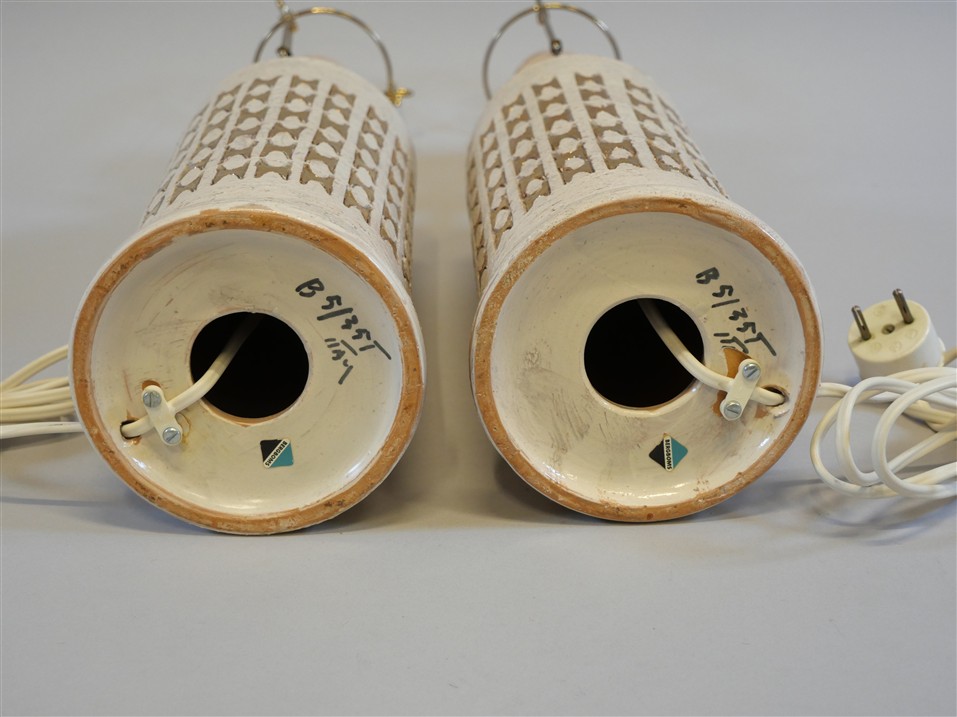 463. BITOSSI/BERGBOMS. Bordslampor 1 par, 1900-talets andra hälft. Cylindrisk. Höjd till fäste 35 cm.