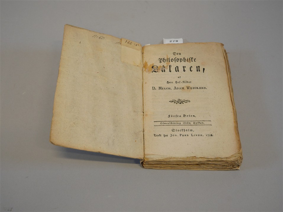 279. BOK. Den philosophiske läkaren af herr hof-rådet D. Melch. Adam Weickard. Första delen. 1798.