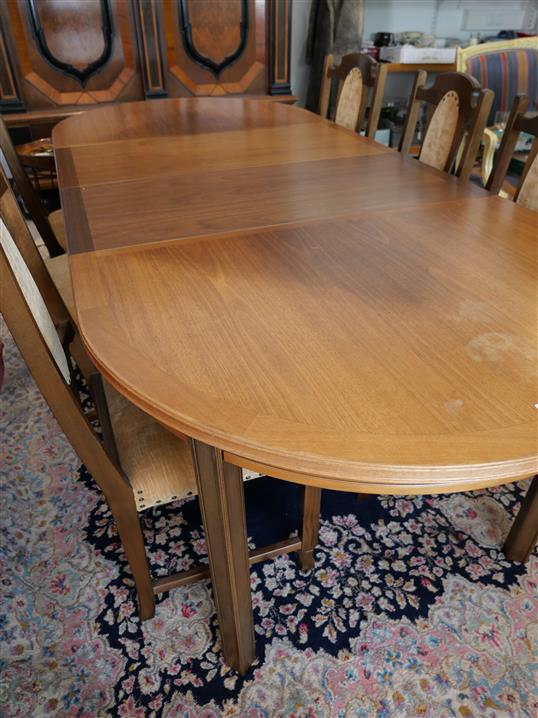 347. BORD MED 6 STOLAR, Samt 2 iläggsskivor. H. 74 cm L. 232 cm B. 100 cm. Skivan med skador