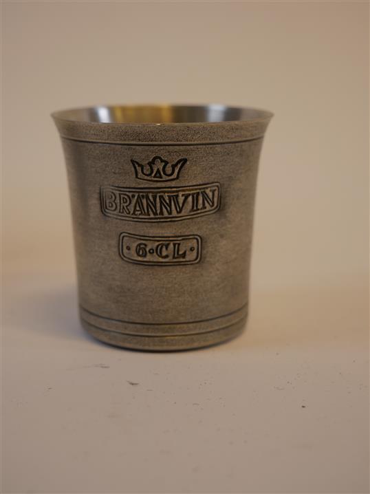 328. BRÄNNVINSFLASKA och 8 snapsglas. Scandia Tenn.