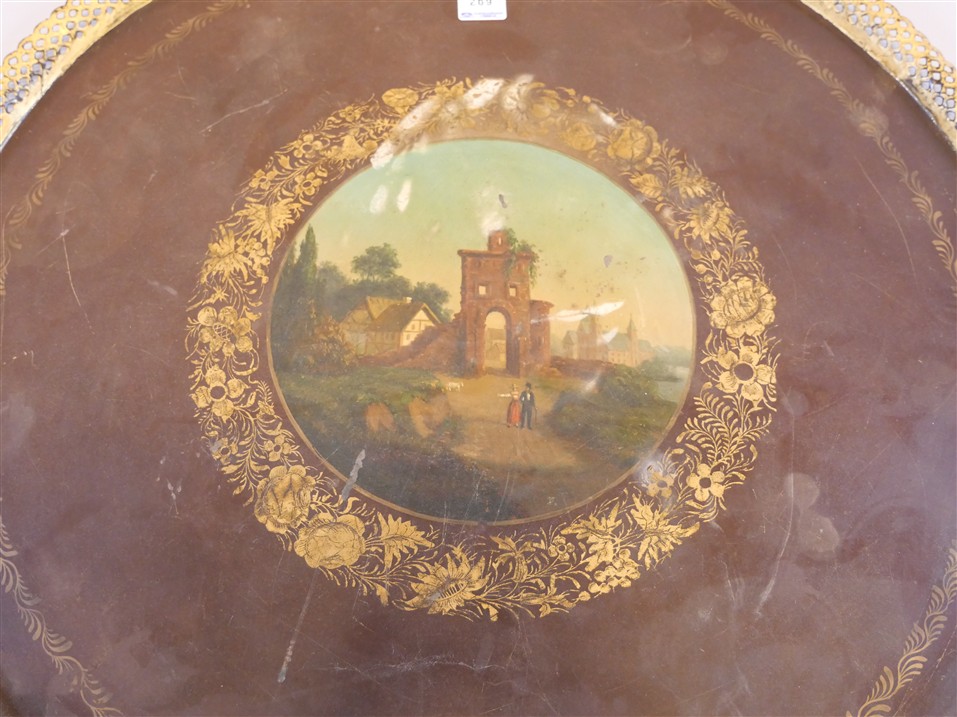 269. BRICKA, sekelskiftet 1900, metall med fläckar. Diam 56 cm.