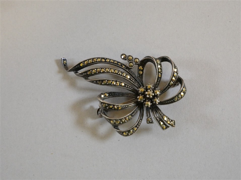 382. BROSCH, Hänge med sten och halsband. Silver.