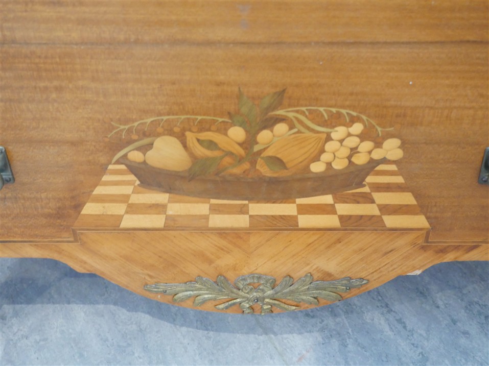 272. BYRÅ med marmorskiva, intarsia. H 78 cm. B 78 cm. Dj 45 cm.