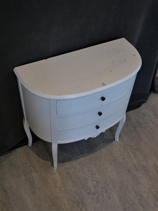 433. BYRÅ, Trelådig. H 65 cm. L 65 cm. B 30 cm. Färg delvis borta.