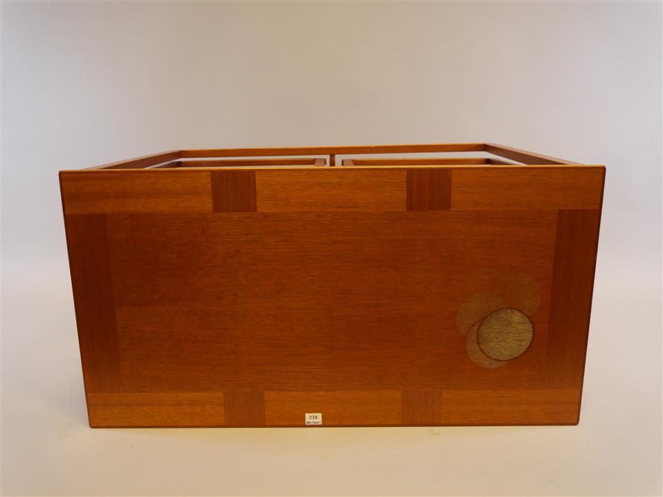 239. CARL MALMSTEN. Satsbord 3 delar "Släden". Silverplakett Carl Malmsten "Jubileumsmodell 1988 Nr 226" H 61 cm. L 80 cm. B 42 cm. De mindre borden H 56 cm. L 39 cm. B 36,5 cm. Bordsskivan med skada.