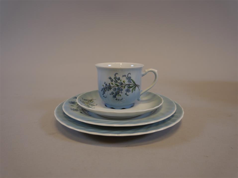 321. CHRISTINEHOLM. Mat- och kaffeservisdelar. Mat 6 st, Djupa 6 st, förrtättstallrikar 6 st, Assietter 8 st Koppar 8 st, sockerskål, Fat, Skålar 2 st ich salt och pepparströare