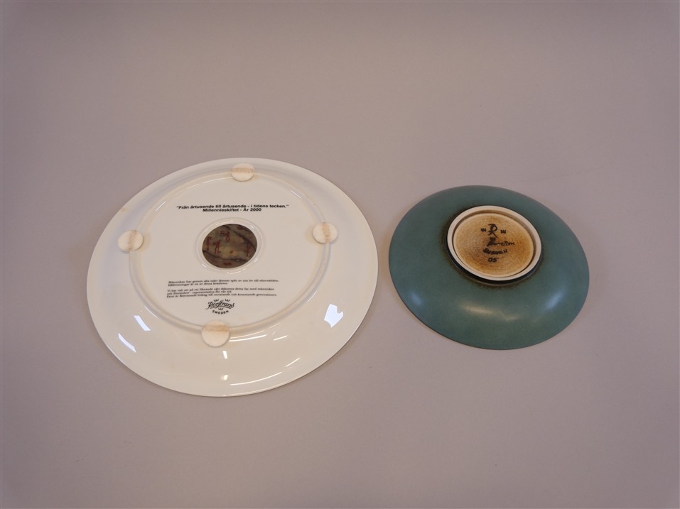 058. FAT Rörstrand Milleniumskiftet Diam 33 cm. FAT Rörstrand Diam 23 cm, sign Bengtson .