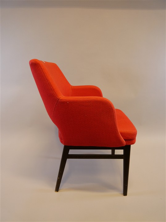 116. FÅTÖLJ. Sitthöjd 44 cm. Fläck på sitsen.