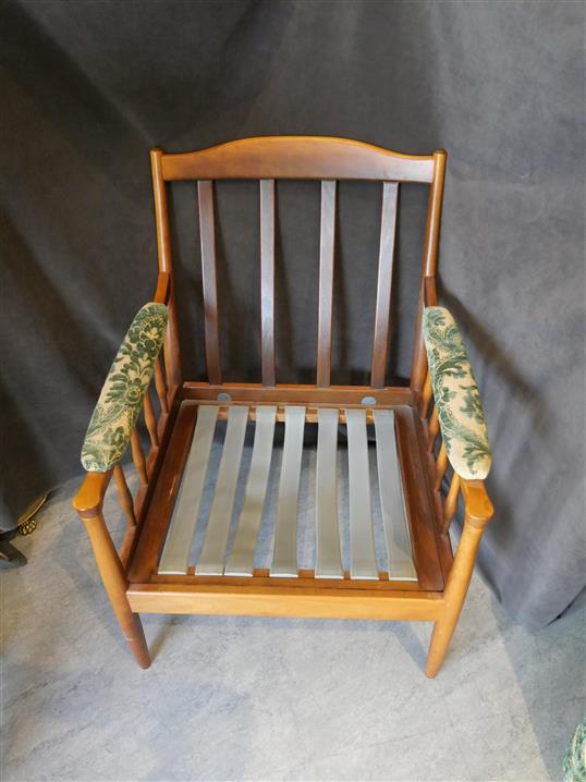 495. FÅTÖLJER 2 st. Fargas, Denmark. 1960-tal. H. 81 cm Sitthöjd: 41 cmPlastremmar delvis slitna.