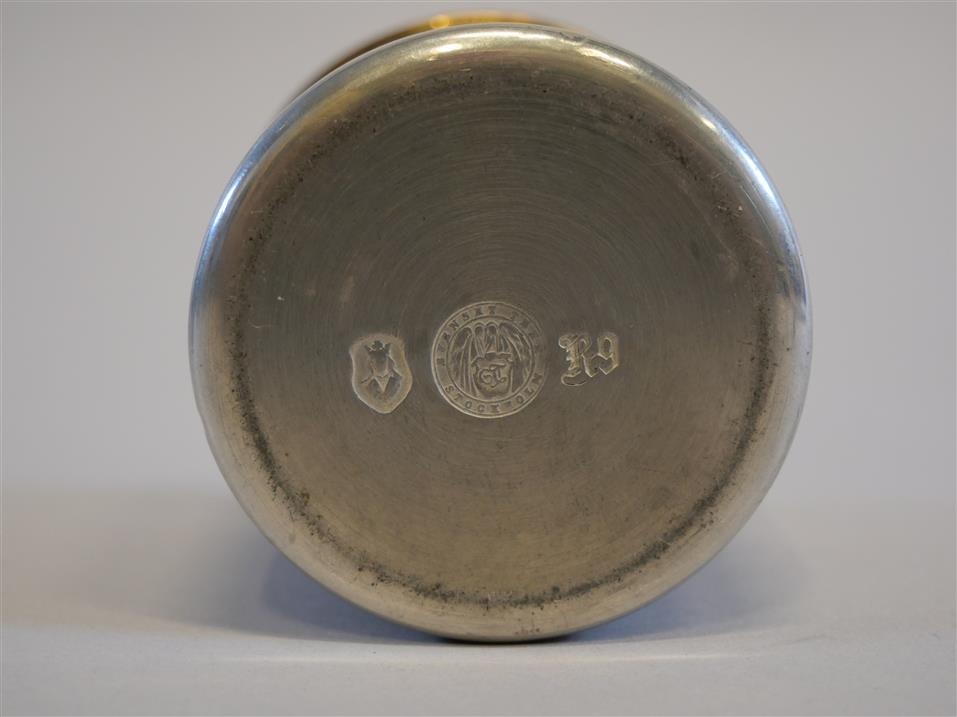 006. FIRMA SVENSKT TENN. Burk m lock, tenn. 1954. Mindre invändig kantskada. H. 9 cm.