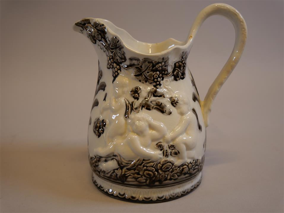 192. GEFLE, Mullbär. Muggar 4 st, Fat 6 st, Uppläggningsfat med baksidesnagg, Kanna, Ljusstakar 2 st, Terrin. Delvis krackelerade