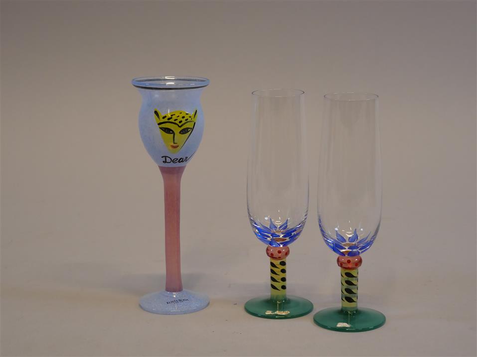 097. GLAS 2 st. Ken Done och Glaspokal "Open Minds" Ulrica Hydman-Vallien. H. 18.5 och 19.5 cm