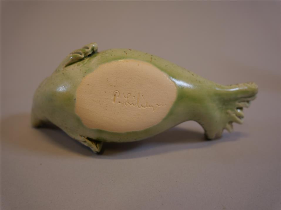 488. GLASFISKAR 2 st L 14,5 resp 20 cm. SÄL keramik Per Liliengren L 16 cm.
