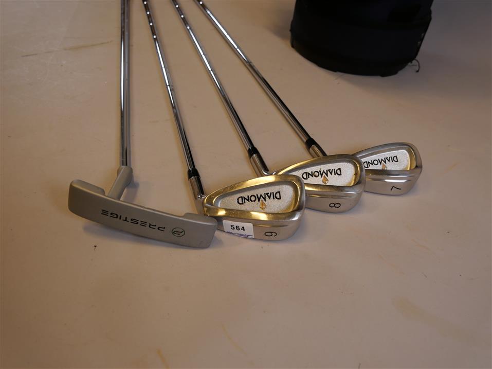564. GOLFBAG Samt 4 klubbor, Dimond 6, 7, 8, Putter