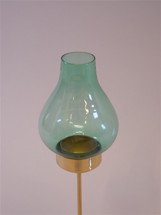 268. GUNNAR ANDER. Ystad Metall. Ljuslyktor 1 par, mässing och glas. Höjd ca 30 cm.