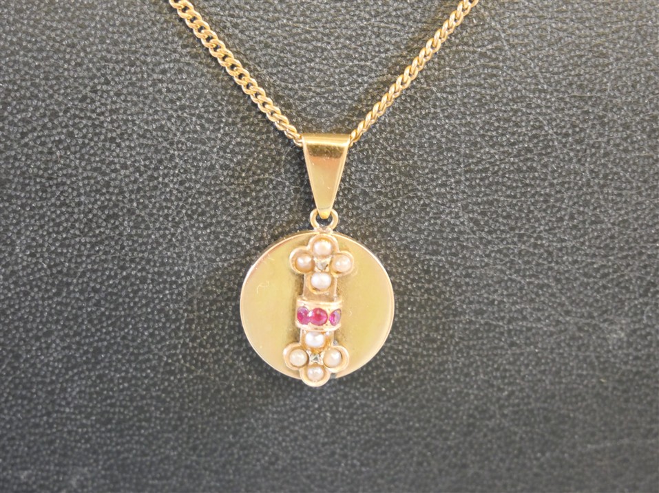 444. HALSBAND 18K, hänge med stenar (hänget ostämplat) Längd ca 42 cm. Bruttovikt 6,2 gram.