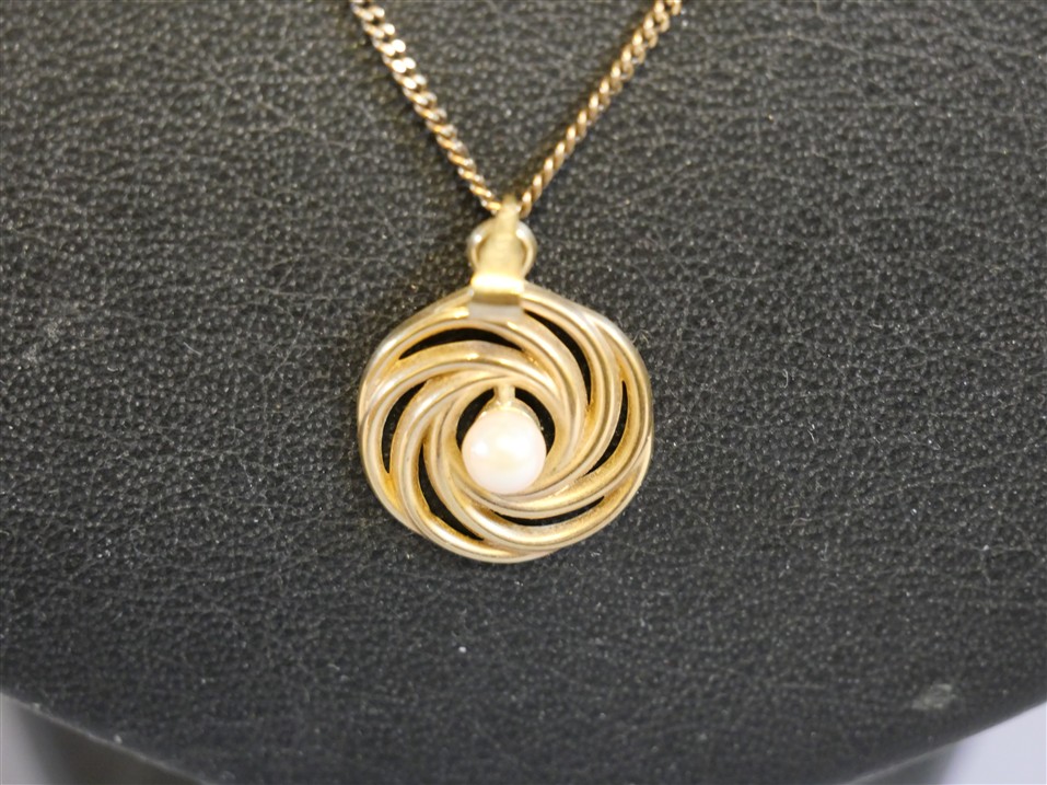 394. HALSKEDJA med hänge 9K. Bruttovikt 3,6 gram.