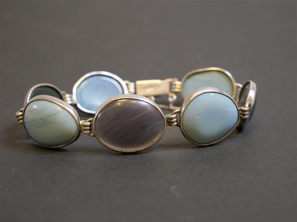 453. HÄNGE MED STEN OCH ARMBAND MED STENAR. Kontr.S. Hängets L. 5.5 cm. Armband c:a. 18 cm