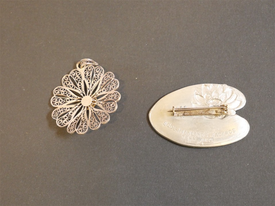365. HÄNGE silver och BROSCH Södermanlands näckros, tenn.