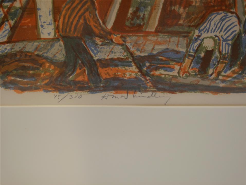 181. HARALD LINDBERG. Litografi sign Harald Lindberg, "Lastbåt"40/310. Tavlans mått: 71x56.5 cm