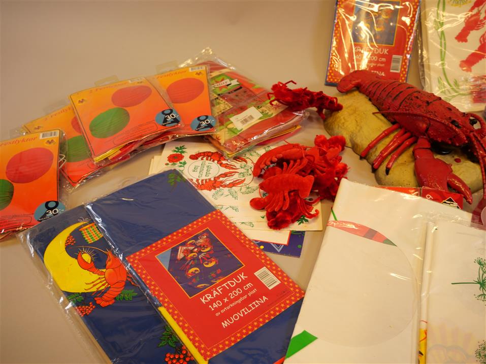 013. HATTAR, SEVETTER, BORDDEKORATIONER. Kräftskiva