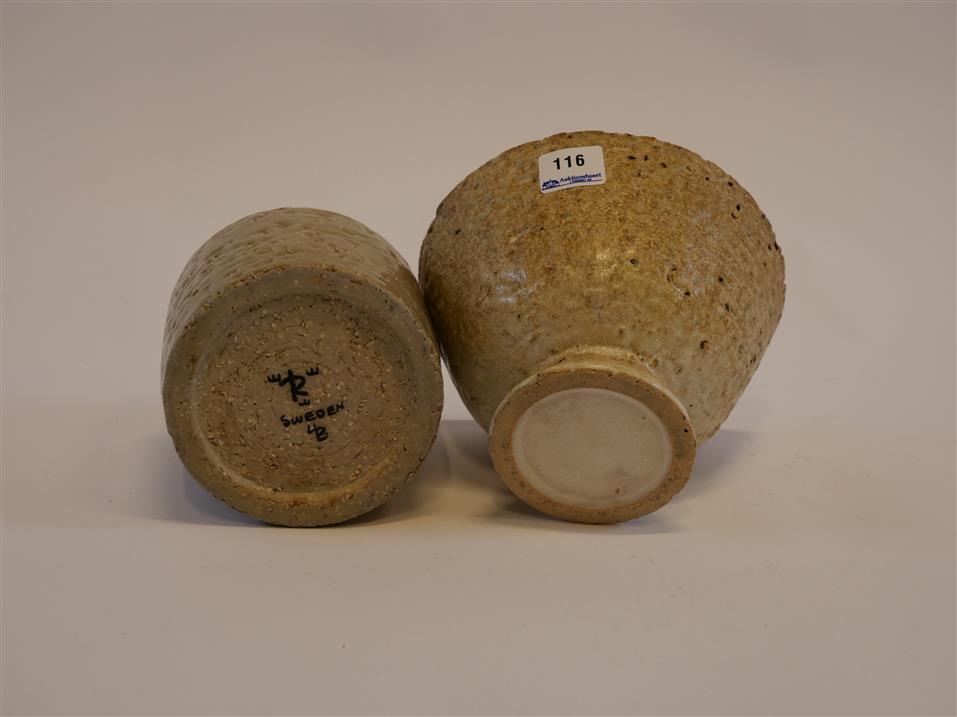 116. HERTHA BENGTSSON, Vas, Rörstrand och Fat på fot. H. 12 och 10.5 cm