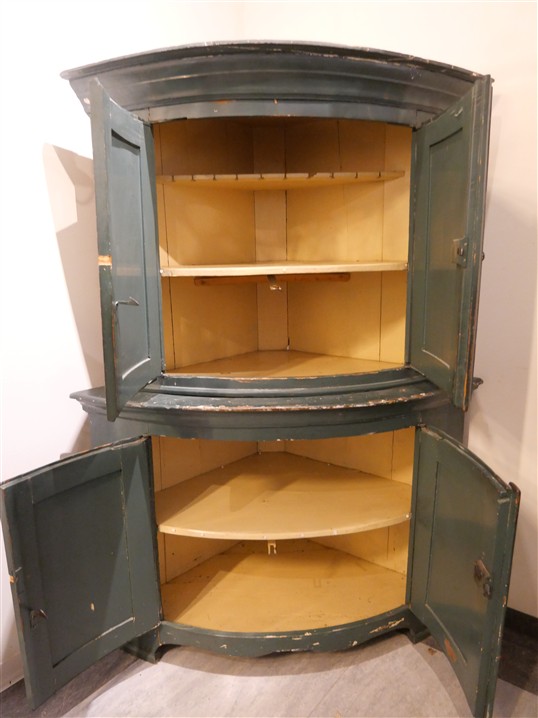 431. HÖRNSKÅP 2-delat, 1800-tal, senare bemålning. H 197 cm. B ca 140 cm. Dj 80 cm.
