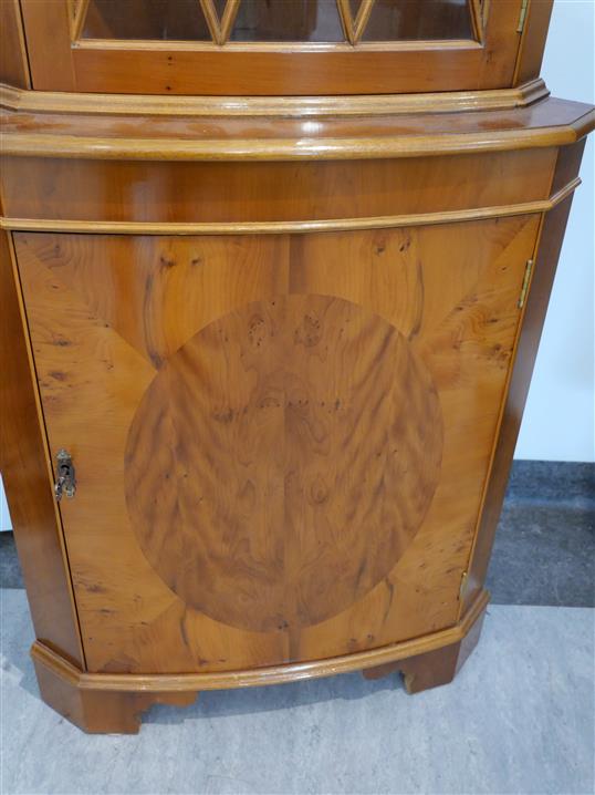 285. HÖRNVITRINSKÅP, idegran. engelsk stil. H. 180 cm B. 64 cm Djup. 46 cm