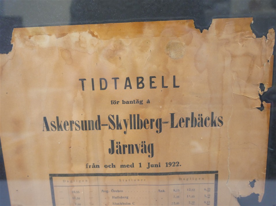 283. INRAMAD Tågtidtabell Askersund - Skyllberg - Lerbäck, 1922. 48 x 38 cm.