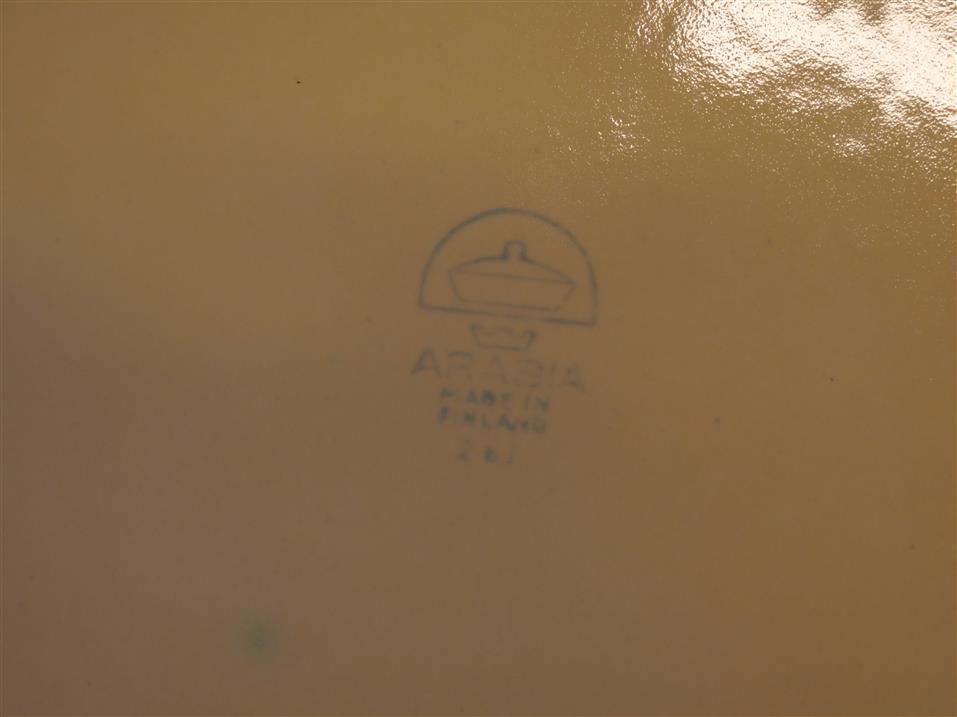 146. KOCKUMS, emaljerad gryta 2 1/2 liter. Arabia tallrikar 8 st Diam 23,5 cm.