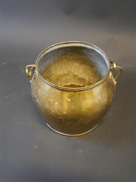 224. KOPPARBUNKE. Diam. 39 cm. MÄSSINGSKRUKA, lock saknas. H. 18 cm.