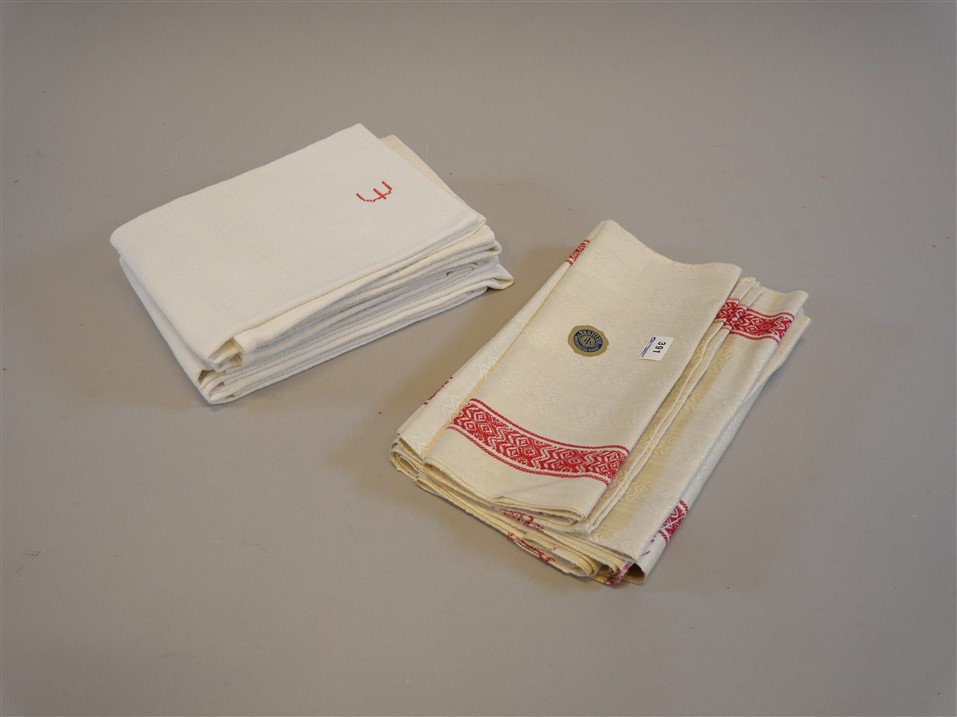 391. LINNEHANDDUKAR 6 st. Tillklippta handdukar för 6 st handdukar, hellinne, ej fållade