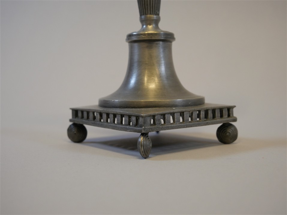 011. LJUSSSTAKAR, tenn, par. 1900-tals kopior efter G. W Lindberg, Örebro. H. 22,5 cm.