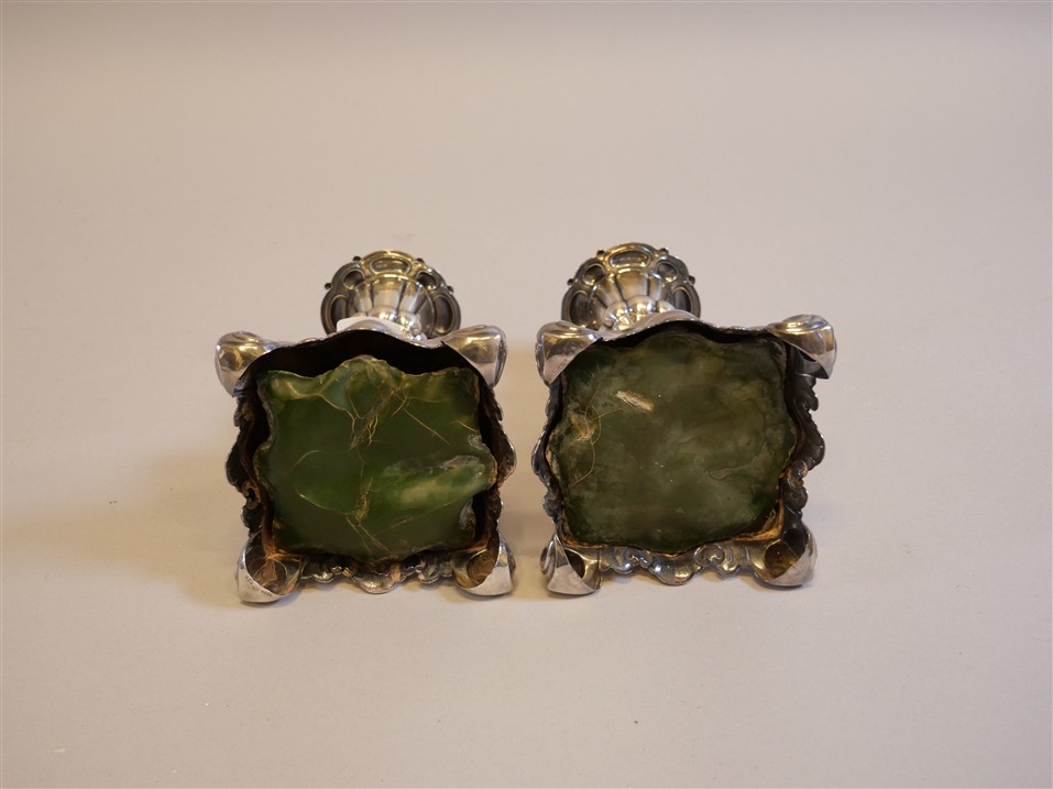 574. LJUSSTAKAR 1 par. Kontr.S. Barockstil. H 18 cm. Bruttovikt 1.226 gram.